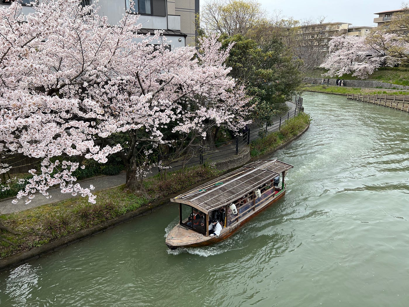 In addition, the area around the dock has beautiful scenery. The clear waters of the Fushimi River and the lush green shoreline create the atmosphere of an old-fashioned landing.